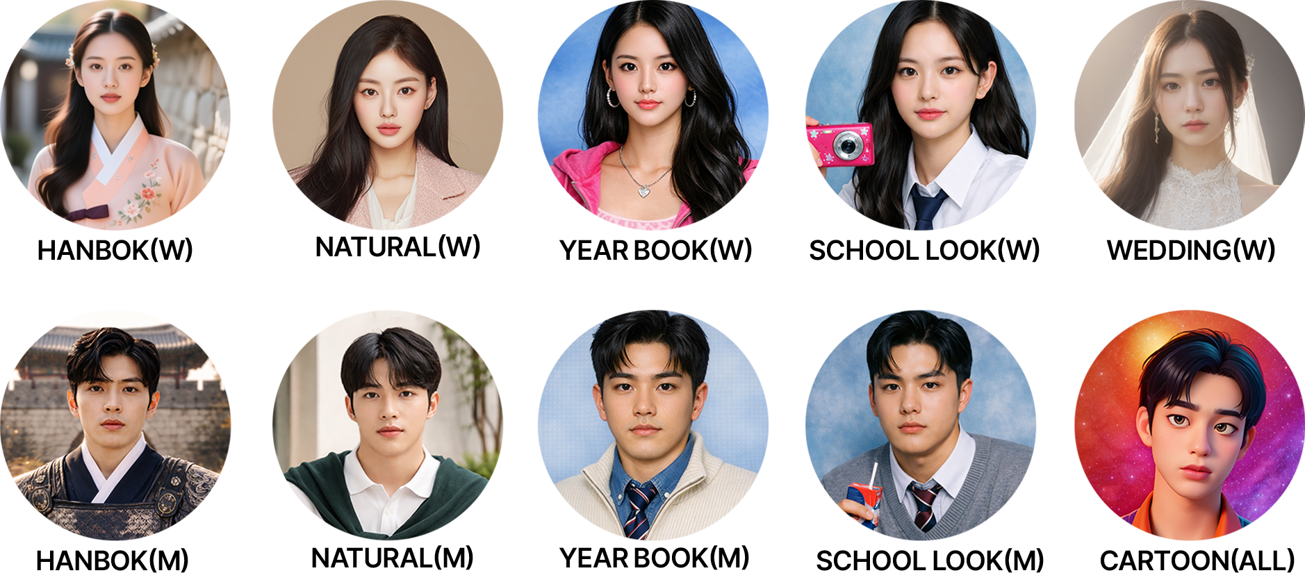 We offer a variety of styles, including natural, earbook, wedding, hanbok, retro, and more!